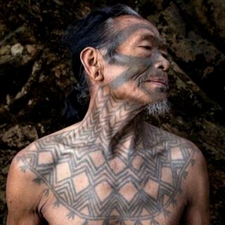A warrior’s tattoos symbolized his accomplishments. If he brought home a body part of the enemy his reward was a tattoo on his body. If he severed a head, he earned the privilege of getting one on his face. And after a warrior had taken five heads, he could have his neck tattooed with the prestigious “spider web” design. Today, with headhunting a thing of the past, elder tribesmen are the only ones left wearing these amazing tattoos.