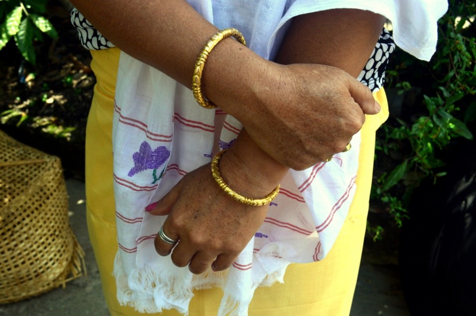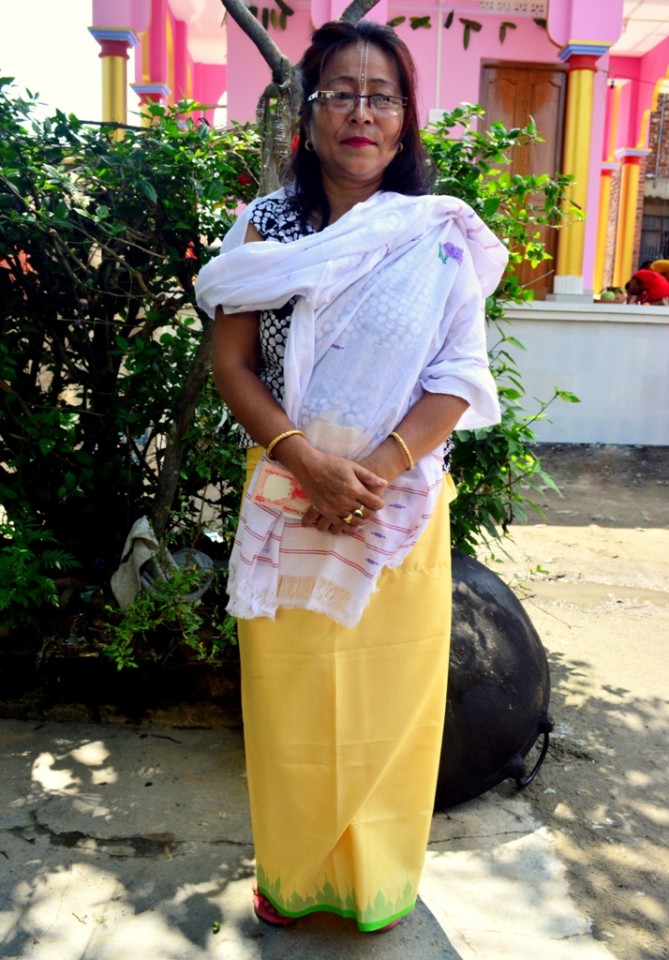 Like our friend Premabati chic as ever in her glowing, yellow phanek. Made of hand-loomed cotton or silk, the full-length wrap-around skirt is commonly worn by Meitei women, be it for daily office work or on auspicious occasions. The bottom of the phanek is adorned with different designs; Premabati’s resembles a temple.