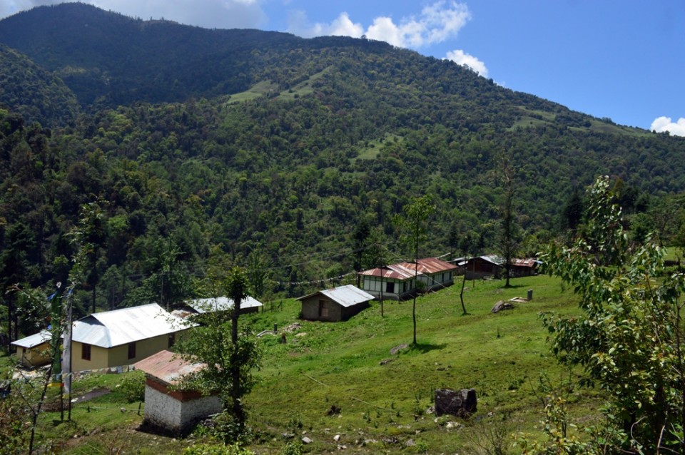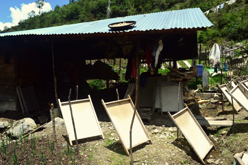 After 90 minutes drive on a rough road that transverses several mountainsides we arrived in Mukto, home to a population of around 700. We were warmly welcomed by Rinchin Gombu, former village Sarpanch and patron of the local NGO whose aim it is to preserve handmade paper production in Mukto.