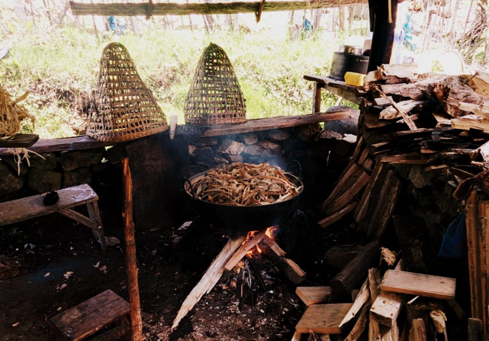 First, the bark of the indigenous shuk shang or paper tree is harvested and delivered to the paper maker for further processing. Those who harvest this all-important bark receive half of the finished paper as barter for their labor. It appears that only a handful of men still do the harvesting at all.