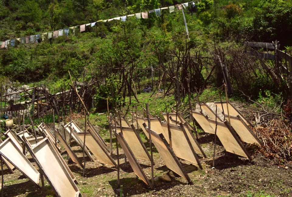 When paper was first made in the Himalayas cannot be dated back exactly, but archaeological finds indicate that it has been used for writing Buddhist manuscripts for over a thousand years. This very art, handed down for generations, is what we hoped to witness.