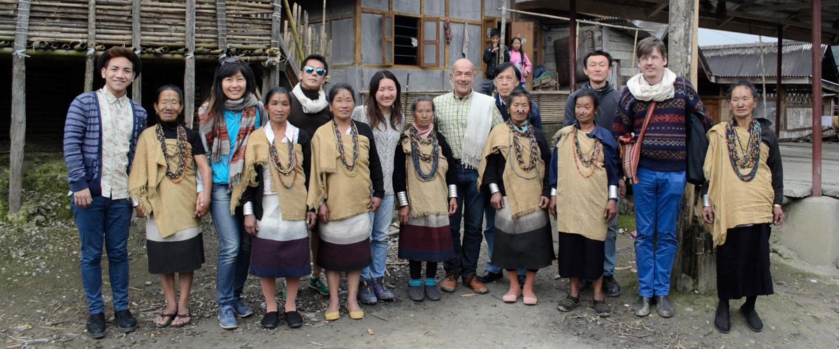 Using Ziro as a base, the entire day is spent visiting the Hong and other Apatani Villages . Everywhere we go we are warmly welcomed. As E.T. Dalton noted in 1845, “The men do not rejoice in much drapery, they wear a girdle of canework painted red which hangs behind in long bushy tail.” Just as the tail is the distinctive part of the male dress, so is the nose plug peculiar to the Apatani women. It is the ambition of each woman to wear the largest possible nose plugs, which are made of wood. Both sexes extensively tattoo their faces. Each sect has distinctive features. Their hats, clothes, ornaments, language and even physical features are totally different.